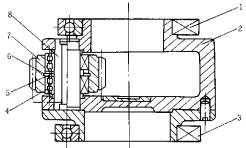 1—軸承 2—轉架 3—軸承 4—軸承 5—內隔環(huán) 6—外隔環(huán) 7—行星輪 8—行星輪軸