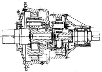 1—輸入軸 2—太陽輪 3—輸入行星架 4—潤滑管路 5—機體 6—后機蓋 7—輸出行星架