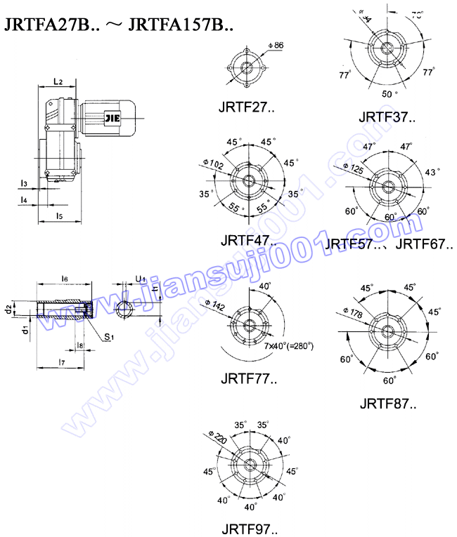 JRTF平行軸——斜齒輪減速電機安裝尺寸(JRTFA27..~JRTFA157..)