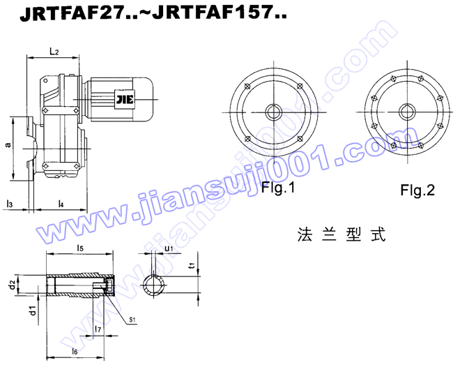 JRTF平行軸——斜齒輪減速電機安裝尺寸(JRTFF27..~JRTFF157..,JRTFAF27..~JRTFAF157..) |