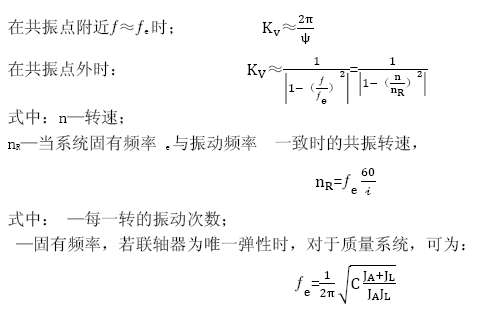 當(dāng)需要減振、緩沖、改善傳動(dòng)系統(tǒng)對中性能時(shí),應(yīng)選用撓性或彈性聯(lián)軸器,且機(jī)組系統(tǒng)中聯(lián)國器為唯一彈性部件,主、從動(dòng)機(jī)可簡化為兩個(gè)質(zhì)量系統(tǒng),此時(shí)可采用以下計(jì)算,其他情況則需引入振動(dòng)計(jì)算。