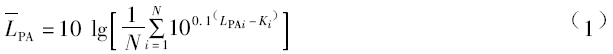LPAi——第i測(cè)點(diǎn)的A計(jì)權(quán)聲壓級(jí),dB(A)。