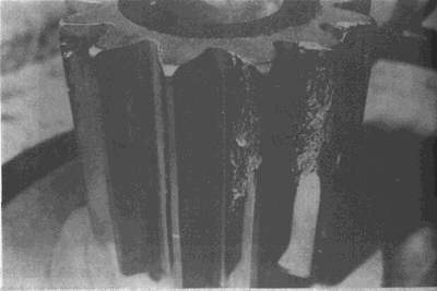 氮化小齒輪幾個(gè)輪齒上最大負(fù)載區(qū)域的剝落。