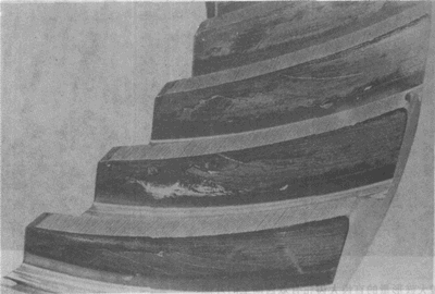 表示齒面一個(gè)蝕坑如何在齒面里層發(fā)展的一輪齒橫截面。