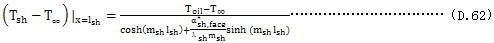 如果不用迭代法,對(duì)由軸與聯(lián)軸器的始端與終端過熱溫度的平均溫度差(Tsh,fl-T∞)取數(shù)學(xué)平均值,可使計(jì)算簡(jiǎn)化。因?yàn)榻?jīng)過軸與聯(lián)軸器的熱耗散大致僅為全部熱耗散的10%,這種簡(jiǎn)化一般在實(shí)際計(jì)算時(shí)是允許的。所以下式是適用的。
