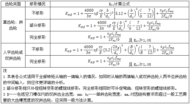 在無法按上述方法確定KHβ時,可按本標(biāo)準(zhǔn)提供的下述兩種方法——一般方法或簡化方法近似計算齒向載荷分布系數(shù)。