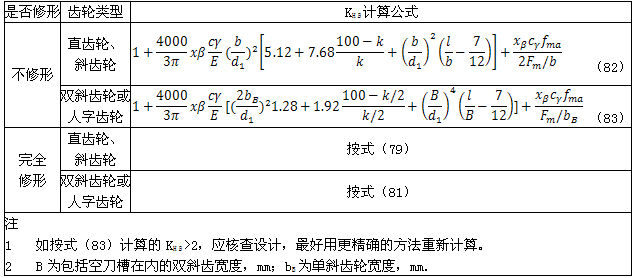 式中:KHβ——接觸強(qiáng)度計算的齒向載荷分布系數(shù),見6.3.2或6.3.3;