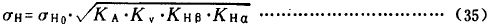 錐齒輪節(jié)圓處的計(jì)算接觸應(yīng)力σH按下式確定:
