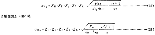 赫茲應(yīng)力是影響齒面接觸應(yīng)力的基本因素。本標(biāo)準(zhǔn)考慮工作條件將修正后的赫茲應(yīng)力作為齒面計(jì)算接觸應(yīng)力。