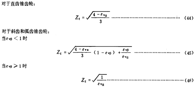 重合度系數(shù)Zε是考慮重合度對(duì)單位齒寬載荷影響的系數(shù)。其值可按式(44)、(45)、(46)計(jì)算或由圖6查取。