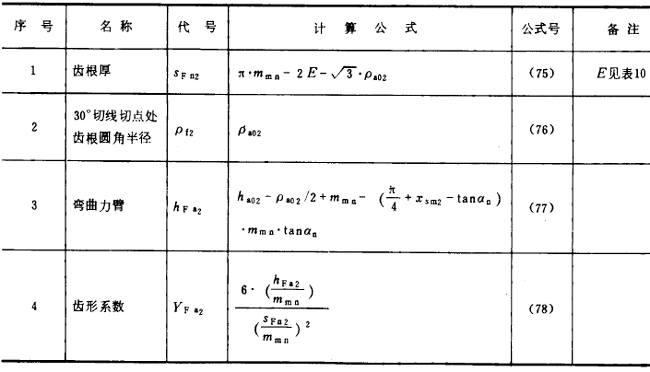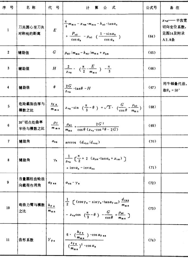 表11成型法加工齒輪齒形系數(shù)YFa2的有關(guān)公式