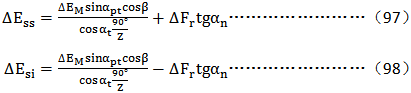 對(duì)基本齒廓位移的測(cè)量結(jié)果ΔEHs,ΔEHi,應(yīng)用設(shè)計(jì)圖樣規(guī)定的基本齒廓位移極限偏差EHs,EHi對(duì)其進(jìn)行評(píng)定。當(dāng)設(shè)計(jì)圖樣未作規(guī)定時(shí),應(yīng)將圖樣規(guī)定的齒厚極限偏差Ess、Esi按公試(87)、(88)換算成EHs、EHi;也可以將測(cè)得的ΔEHs,ΔEHi,按公試(89)(90)換算為ΔEss、ΔEsi,用設(shè)計(jì)圖樣規(guī)定的Ess、Esi對(duì)其進(jìn)行評(píng)定。