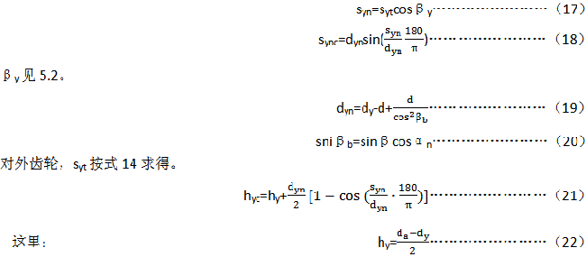 控制相配齒輪的齒厚是十分重要的,以保證它們在規(guī)定的側(cè)隙下運(yùn)行。有些情況下,由于齒頂高的變位,要在分度圓直徑d處測量齒厚不太容易,故而用一個計算式給出在任何直徑dy處齒厚s,見圖16,推薦選取dy=d+2mnx。