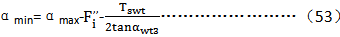 在下面求αmin的公式中,用αwt3作為最小壓力角是一個近似的方法,如時需要更為精確的結(jié)果,可用式49或工50和αmin重新計算,取得最后的數(shù)值。