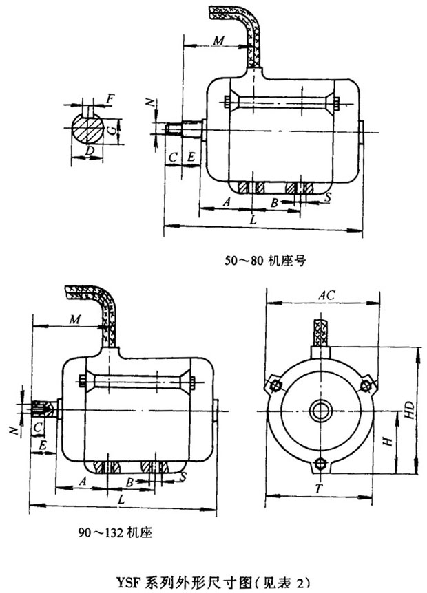 YSF系列軸流風(fēng)機(jī)專用三相異步電動機(jī)外形及安裝尺寸