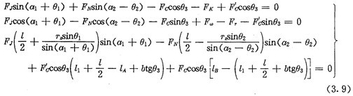由于考慮了慣性力,所以力Fc 不通過交點Q,lc也是一個未知數(shù)。若根據(jù)輸入功率確定出FJ,則方程組(3.8)只剩下FN、FC及lc三個未知數(shù)了。