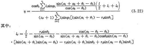 計算時,先根據(jù)輸入功率P1及轉(zhuǎn)速ωJ由(3.19)式計算出FJm,然后對每一工作推桿由式(3.17)計算出FJi,由式(3.10)式及式(3.11)計算出Fci及lci,最后代入式(3.21)計算出效率η。