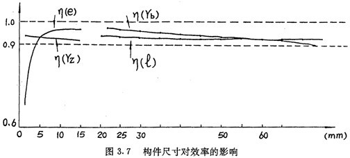 為了判斷推桿減速器構(gòu)件尺寸對其效率的影響,對3TWY7.5-12推桿減速器,選用同一組摩擦系數(shù),而改變某一基本構(gòu)件尺寸,并假定傳動圈尺寸隨之改變以確保受力交點Q落在傳動圈所在環(huán)內(nèi),計算其嚙合效率,結(jié)果如圖3.7所示。