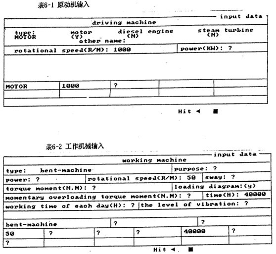 系統(tǒng)的輸入是專家系統(tǒng)的“開場條件”,人工設(shè)計的方法是由定貨單位向設(shè)計人員提供任務(wù)書(以口頭或書面形式),設(shè)計人員通過這些已知條件進(jìn)行設(shè)計工作。專家系統(tǒng)則要求設(shè)計人員(或由定貨人員)與計算機(jī)進(jìn)行“對話”,以便使專家系統(tǒng)了解原始的已知條件。事實上,由于受人工智能和計算機(jī)技術(shù)發(fā)展的限制,還不能同計算機(jī)形成視、聽對話,因而,圓柱齒輪減速器設(shè)計專家系統(tǒng)仍采用傳統(tǒng)CAD所采用的方法,即采用精確的輸入方式(或稱數(shù)據(jù)輸入方式而非語言物入方式)。