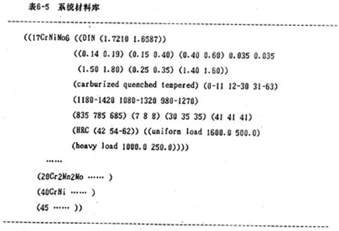 軸、箱體以及對大型組裝具輪采用的支撐部分的材料的選擇方法類同于齒輪材料,在此不詳細(xì)討論。若當(dāng)前材料數(shù)據(jù)庫無可供選擇的材料時,系統(tǒng)便要求用戶輸入指定的材料特性,并按相應(yīng)的格式加入到材料數(shù)據(jù)庫,以便不斷地完善系統(tǒng)的材料庫。