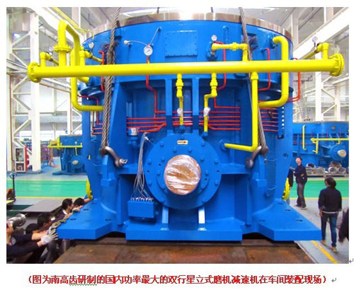 南高齒成功研制國內(nèi)功率最大的(5400kW)雙行星立式磨機(jī)減速機(jī)