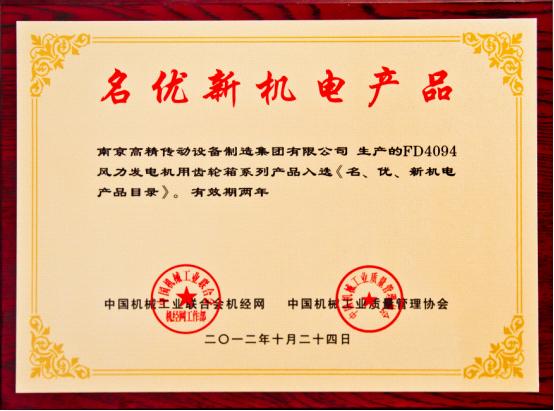 近期,由中國機械工業(yè)質量管理協(xié)會和中國機械工業(yè)聯(lián)合會機經網(wǎng)共同主辦的“名優(yōu)新機電產品”評選活動中,南京高精傳動設備制造集團有限公司(簡稱:南高齒)子公司南京高速齒輪制造有限公司研制的的FD4094型風電齒輪箱系列產品成功入選《名、優(yōu)、新機電產品目錄》。