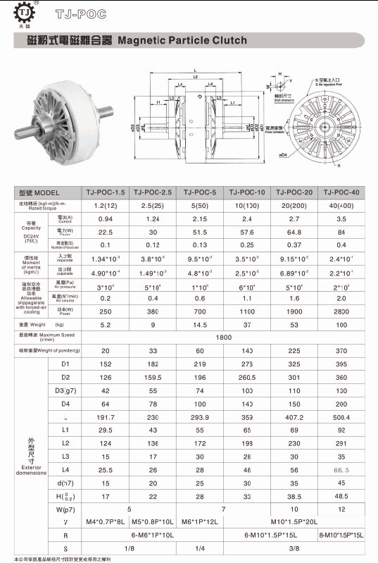 天機TJ-POC電磁式磁粉剎車器被廣大用戶通稱為磁粉制動器。天機磁粉剎車器的用途有1、緩沖起動,停止用:利用連結(jié)時的圓滑特性及定轉(zhuǎn)矩特性達到緩沖起動和停止。2、連續(xù)滑動、張力控制用, 3、轉(zhuǎn)矩限制器用, 4、高速應答用, 5、動力吸收用 ,6、定位停止用 ,7、模擬負載用。
