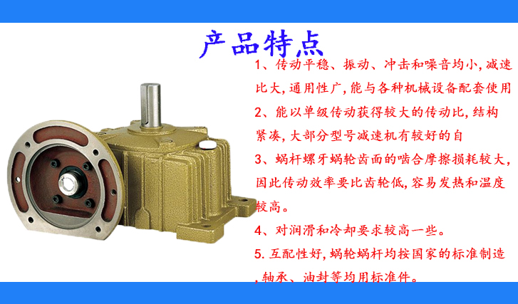 1、傳動平穩(wěn)、振動、沖擊和噪音均小,減速比大,通用性廣,能與各種機械設(shè)備配套使用