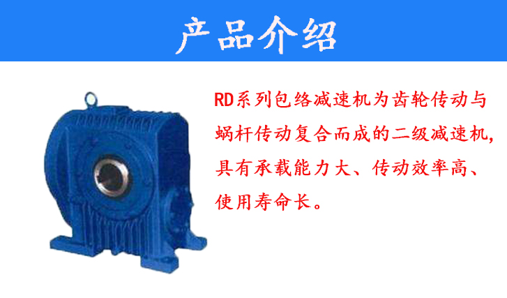RD系列包絡(luò)減速機為齒輪傳動與蝸桿傳動復(fù)合而成的二級減速機,具有承載能力大、傳動效率高、使用壽命長。