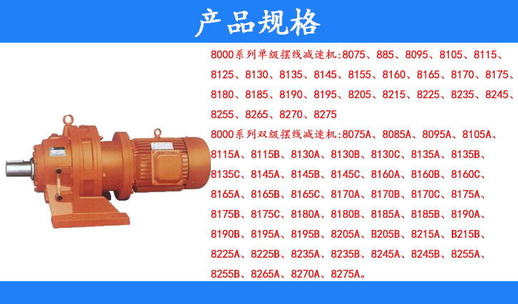 8000系列雙級擺線減速機:8075A、8085、8095A、8105A、8115A、8115B、8130A、B130B、8130C、8135A、8135B、8135C、8145A、8145B、8145C、8160A、8160B、8160C、8165A、8165B、8165C、8170A、8170B、8170C、8175A、8175B、8175C、8180A、8180B、8185A、8185B、8190A、8190B、8195A、8195B、8205A、8205B、825A、8215B、8225A、8225B、8235A、8235B、8245A、8245B、8255A、8255B、8265A、8270A、8275A