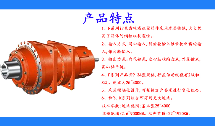 1、P系列行星齒輪減速器箱體采用球墨鑄鐵,大大提高了箱體的鋼性機(jī)抗震性。