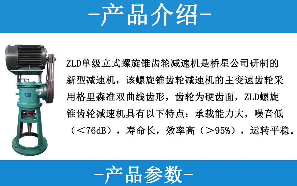 ZLD單級立式螺旋錐齒輪減速機是橋星公司研制的新型減速機,該螺旋錐齒輪減速機的主變速齒輪采用格里森準雙曲線齒型,齒輪為硬齒面