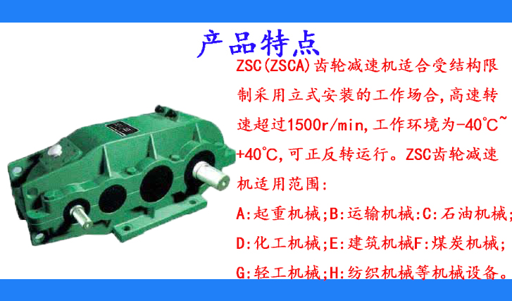ZSC(ZSCA)齒輪減速機(jī)適合受結(jié)構(gòu)限制采用立式安裝的工作場(chǎng)合,高速轉(zhuǎn)速超過1500r/min,工作環(huán)境為-40℃~+40℃,可正反轉(zhuǎn)運(yùn)行。