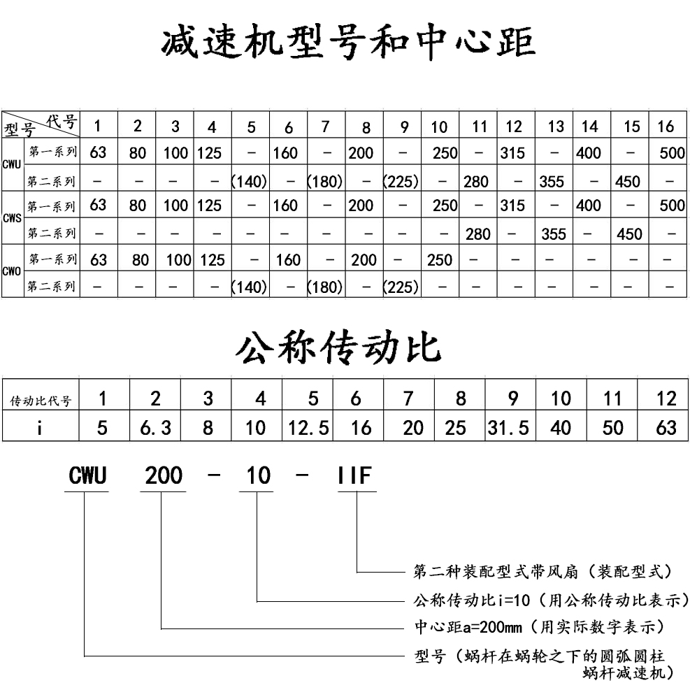 二、型號(hào)、中心距、傳動(dòng)比、標(biāo)記示例