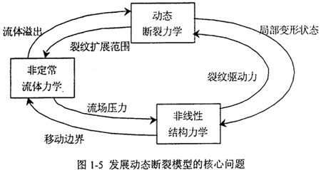 裂紋動態(tài)擴展與止裂問題涉及的是流體/結(jié)構(gòu)/斷裂相互作用又相互影響的過程,如圖1-5所示。流體/結(jié)構(gòu)/斷裂耦合作用下的動態(tài)裂紋擴展包括計算結(jié)構(gòu)力學、流體力學和斷裂力學等相關(guān)學科的綜合: