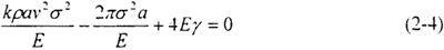 將單位面積的表面能γ用表示為臨界裂紋長度ac的形式,經(jīng)過Berry等人的修正,得到裂紋速度的表達(dá)式: