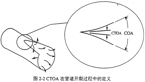 裂紋尖端張開角CTOA(Crack Tip Opening Angle)最早被用來分析核電站管路的穩(wěn)態(tài)裂紋擴(kuò)展,后來用于輸氣管線和航空工業(yè)。如圖2-2,與裂紋張開角COA不同,CTOA對應(yīng)于一定的斷裂擴(kuò)展?fàn)顟B(tài),不隨測量點(diǎn)的位置而改變。CTOA在數(shù)學(xué)上可以按下式定義: