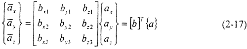 對于總體坐標(biāo)系中的任意矢量a,其在節(jié)點(diǎn)坐標(biāo)系中的分量可以表達(dá)為: