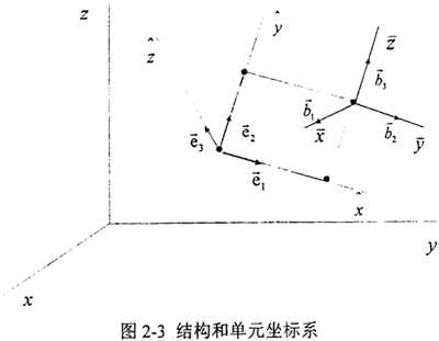 ●節(jié)點(diǎn)坐標(biāo)系行(,,),反映節(jié)點(diǎn)的平動與轉(zhuǎn)動;正交基矢量為bi