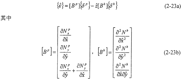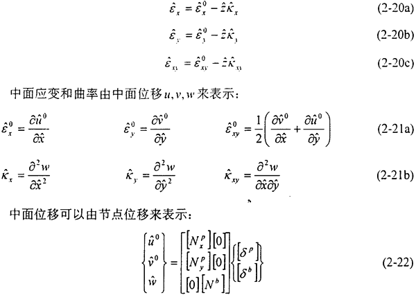 基于Kirchhoff假設(shè)的板殼單元,殼體中某一點(diǎn)的應(yīng)變,可以由中面應(yīng)變,和曲率,,來表示:
