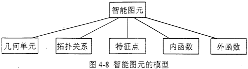 在系統(tǒng)實(shí)現(xiàn)中,智能圖元是一個(gè)典型的“類”的結(jié)構(gòu),包括幾何單元集合、拓?fù)潢P(guān)系描述、特征點(diǎn)集合、內(nèi)函數(shù)和外函數(shù)(見圖4-9),定義如下:
