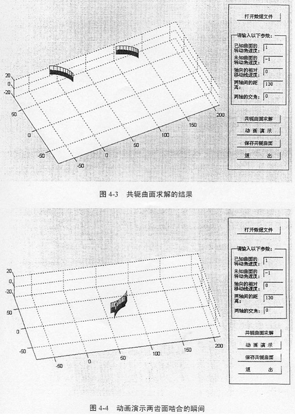 點(diǎn)擊Conjugater1.0界面中的“動(dòng)畫演示”按鈕,可以直觀地看到兩齒面轉(zhuǎn)動(dòng)和嚙合的過(guò)程。