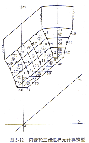 對共軛鼓形齒輪用邊界元法進(jìn)行接觸問題的研究與分析時(shí),首先只需對邊界即齒廓表面進(jìn)行單元?jiǎng)澐,然后對每個(gè)嚙合點(diǎn)即接觸區(qū)進(jìn)行局部細(xì)分,不需像有限元法那樣,需從表到里將整個(gè)齒輪輪齒進(jìn)行劃分。