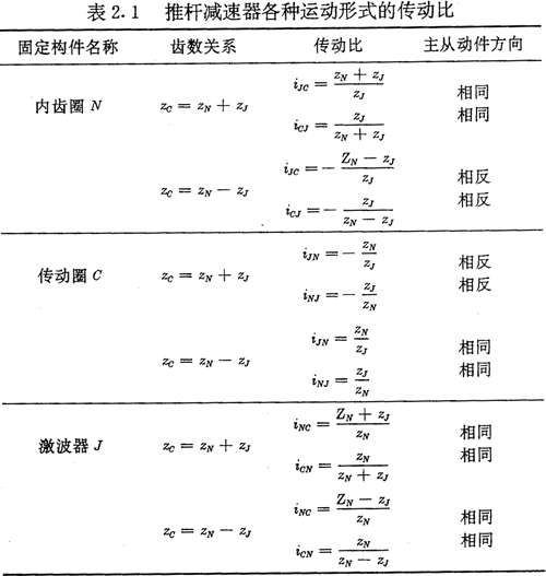 并且ZN應(yīng)是ZJ的整數(shù)倍。當(dāng)式(2.1)取“+ ”號時(shí),推桿減速器為正向結(jié)構(gòu),取“—”號時(shí)為反向結(jié)構(gòu)。