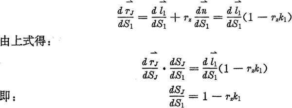 下面再推導(dǎo)一下齒廓及其法向等距線的相對曲率關(guān)系。設(shè)HJ的孤長參數(shù)為SJ,相對曲率為kJ,而H1的孤長參數(shù)為S1,相對曲率為k1,由微分幾何可得: