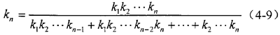 在圖4-3所示的動(dòng)力學(xué)模型中,出現(xiàn)了具有并聯(lián)結(jié)構(gòu)的傳動(dòng)分支,應(yīng)將其轉(zhuǎn)換為等效的串聯(lián)結(jié)構(gòu),以便應(yīng)用傳遞矩陣法建模和求解。對(duì)波發(fā)生器而言,扭轉(zhuǎn)剛度按式(4-9)計(jì)算。