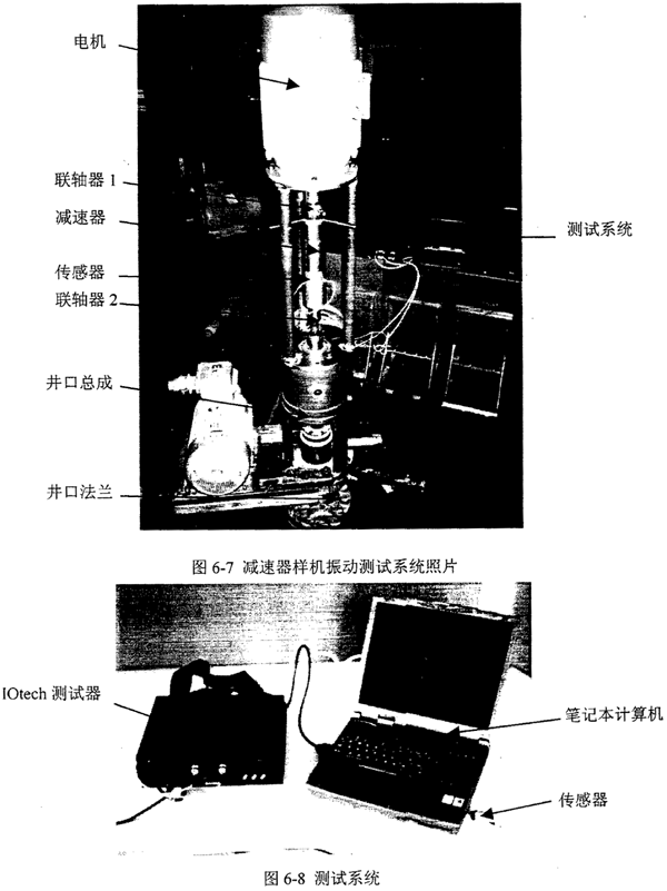 由于電動潛油螺桿泵采油系統的效率從本質上要遠高于傳統的游梁式抽油機系統和地面驅動螺桿泵采油系統,而減速器作為電動潛油螺桿泵采油系統的一個組成部分,其效率提升對整個系統的效率提升作用不十分明顯,另一方面,立式的試驗系統結構僅螺桿泵、減速器和電機三項的地面總高度就達到3.128m,如果測試樣機的效率,還要在樣機的輸入和輸出端上各安裝一個轉矩轉速儀,從而使得整個系統的地面高度達到4m多,己超出了實驗室吊車的吊裝高度。所以,本章不進行效率測試,只進行振動試驗研究。