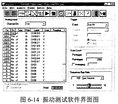 6.2.6.2振動測試數據的處理,振動信號的采集和外理軟件的性能直接關系到測試結果的準確性,本實驗采用的是IOtech開發(fā)的軟件DaqView7.2,它與IOtech測試系統具有很好的兼容性,軟件界面見圖6-14。