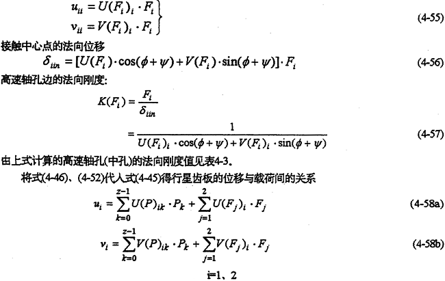 式(4-51)~(4-53)中U(Fj)ikx,U(Fj)iky,V(Fj)ikx,V(Fj)iky為行星齒板柔度系數(shù)的值,由磁盤(pán)文件提供計(jì)算。Ckx,Cky由式(4-30)及式(4-33)計(jì)算。