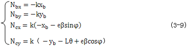 式中(Nbx,Nby)、(Ncx,Ncy):連桿兩端B、C的作用反力沿x軸、y軸的分量。